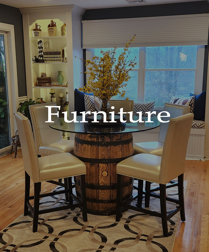 The Barrel Lady's shop is where you go to elevate your home, office, or man-cave with premium quality whiskey and wine barrel furnishings. Each stunning item is created onsite by "The Barrel Lady" in her shop located in Lake Hopatcong, NJ.